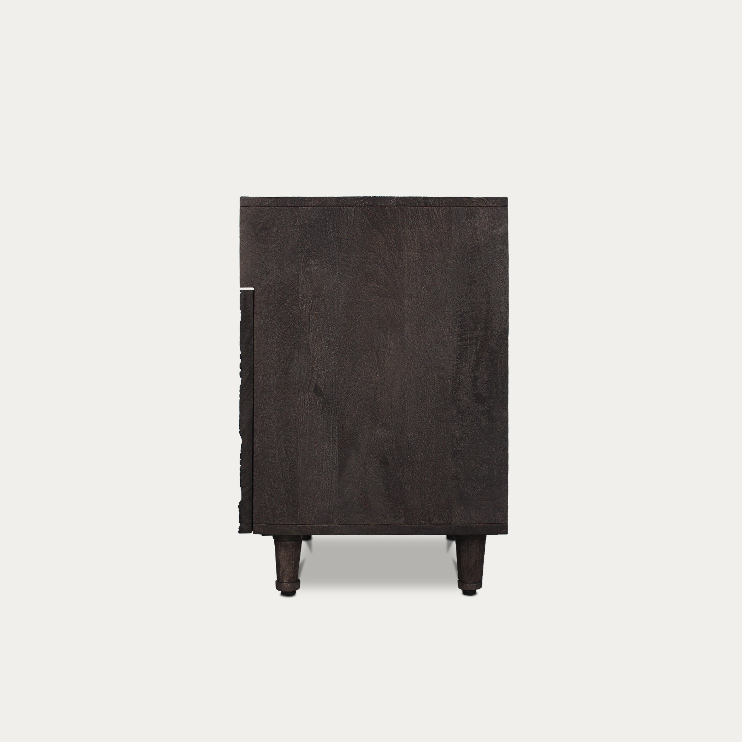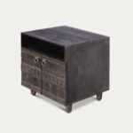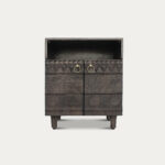 This is not just another night stand. This is statement piece. Crafted from premium mango wood, this carved nightstand features a stunning dark antique wood finish and antique gold knobs, showcasing exceptional craftsmanship and quality. With its intricate ethnic design, it adds a unique, detailed touch to your bedroom. More than just furniture, this piece makes a bold statement, elevating your space with its charm and timeless appeal.