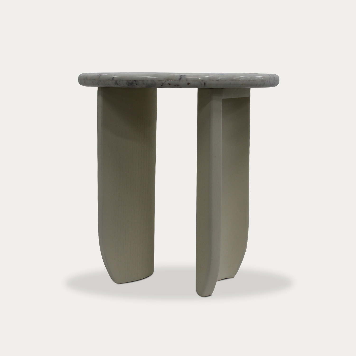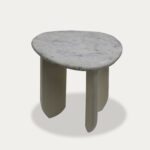 We call this artistry in marble. Our Bender side table is one such peice of furniture. Featuring white marble top and curved ivory finished legs – side table is a true masterpiece of design and craftsmanship. With its unique rounded shape and smooth curves, it makes a bold statement in any room. The artistry behind its creation adds an elegant touch, while its versatile design allows it to complement various interiors, making it a standout piece for any space.