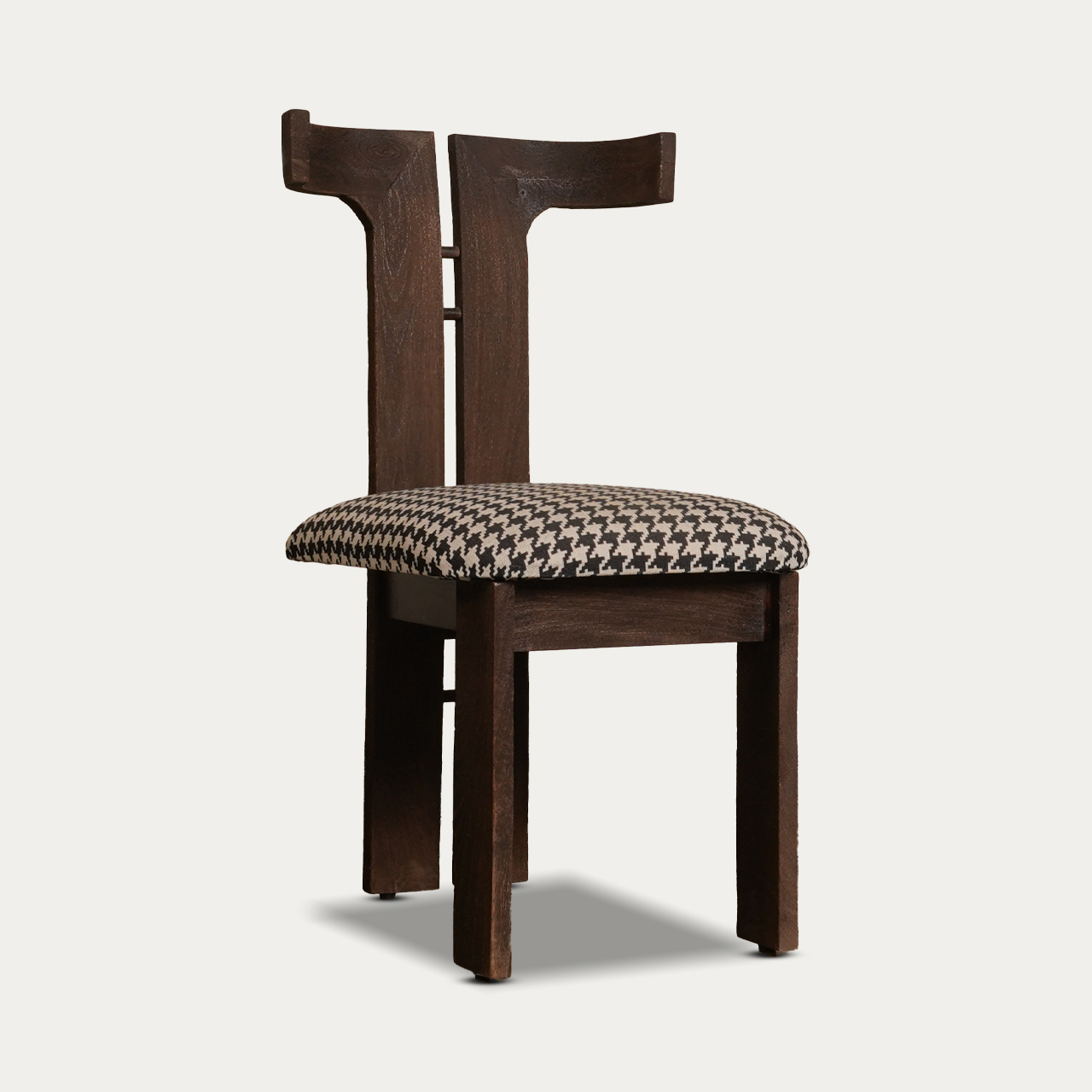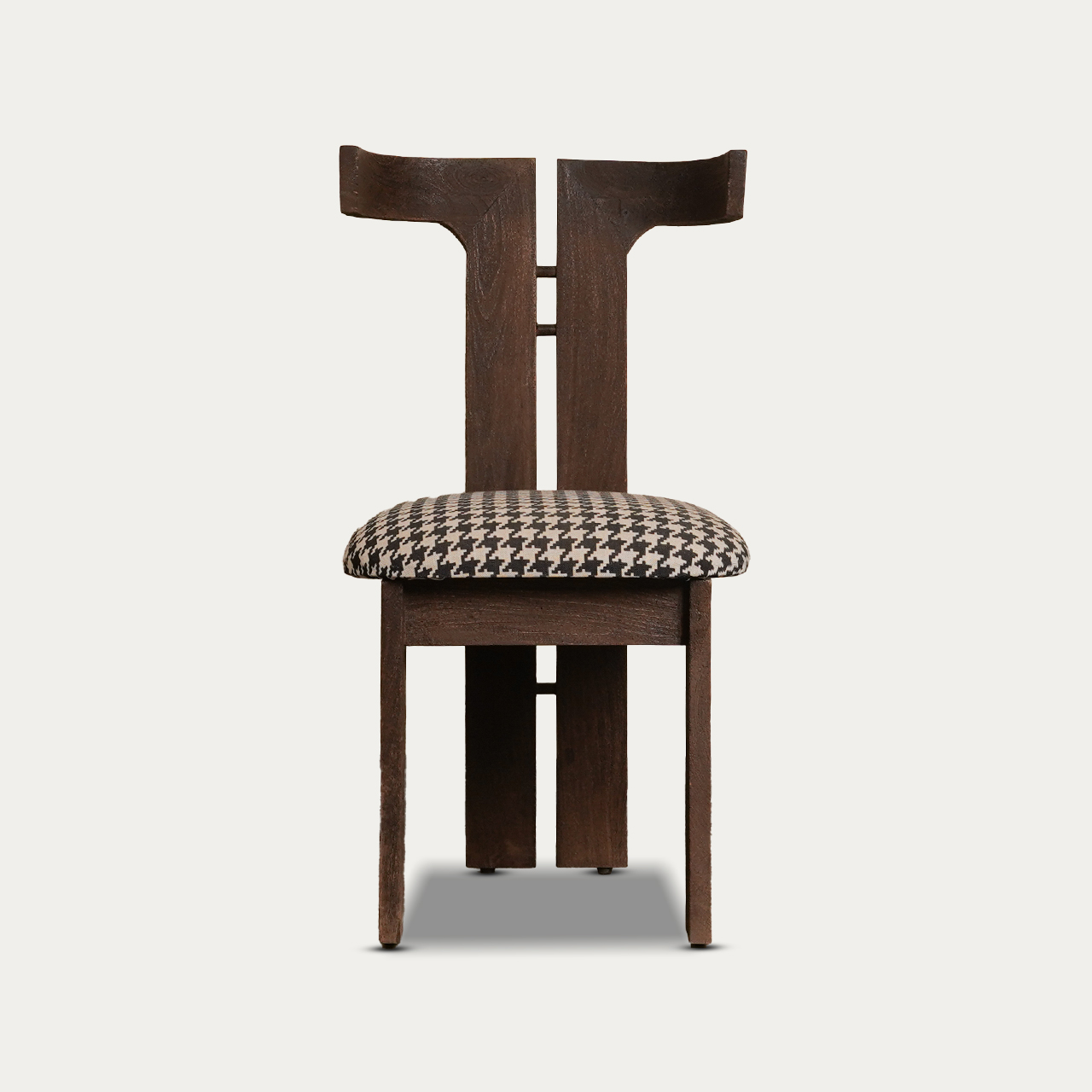 Our Kazan dining chair is uniquely crafted from high-quality mango wood, featuring a sandblasted dark brown finish that adds depth and sophistication. With a modern silhouette back and a large, comfortable cushion seat, this chair blends style and comfort seamlessly. Its ergonomic design ensures great support, making it as functional as it is stylish. A perfect addition to any dining space, this chair combines elegance with practicality for a truly refined look.