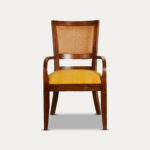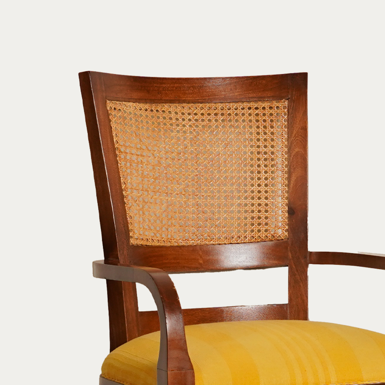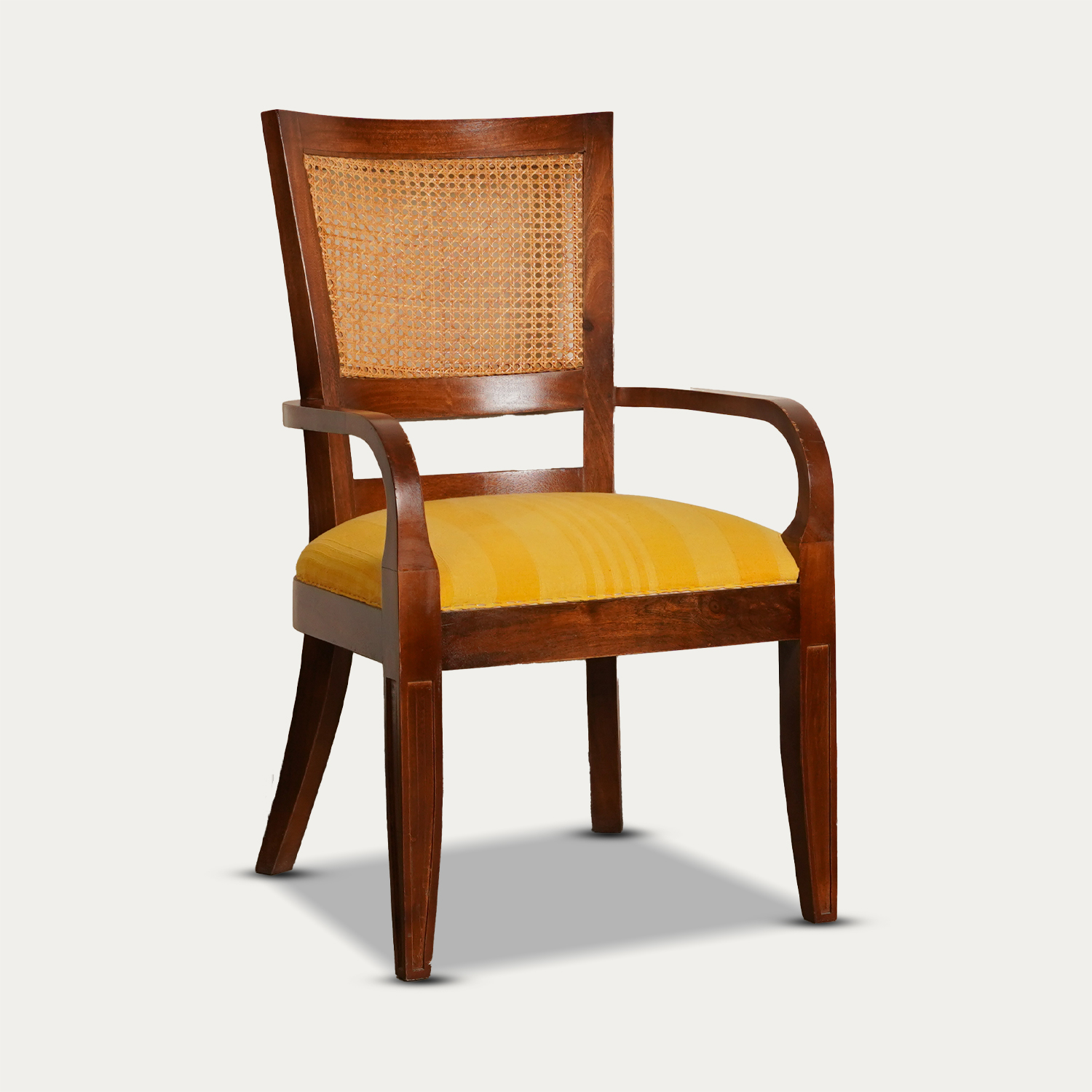 Elevate your dining space with our Konya dining chair, crafted from mango wood and cane in a natural brown finish. The comfy cushioned seat is complemented by raised sleek arms for added comfort, while the beautifully woven cane back design adds a touch of craftsmanship. Ergonomically designed, this chair is both functional and aesthetically pleasing, bringing a clean, minimalist touch to your dining space. The cane material adds freshness and lightness to the design, making it a perfect piece to elevate the charm of your home interiors.