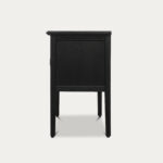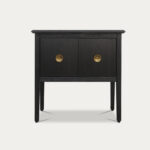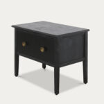 Don’t we all love a clean and bold look! The Leuven night stand is crafted from pine with a matte black finish, exudes a sleek mid-century modern aesthetic. Accentuated by elegant golden metal knobs, it adds a touch of luxury and sophistication to your bedroom. Featuring two small drawers, it offers convenient storage for your nighttime essentials while enhancing your space with its smart, refined look.