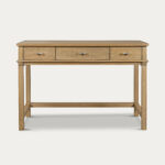 The Rhodes Desk, crafted from oak wood with a rich brown smooth finish, brings timeless elegance to any room. With its functional drawers and beautifully designed structure, this desk adds instant personality and a touch of luxurious antique charm to your space. A must-have piece of furniture in your home, a desk should have character and charm to create a sophisticated workspace that you will want to spend time in, and we think this Rhodes Desk does just that!