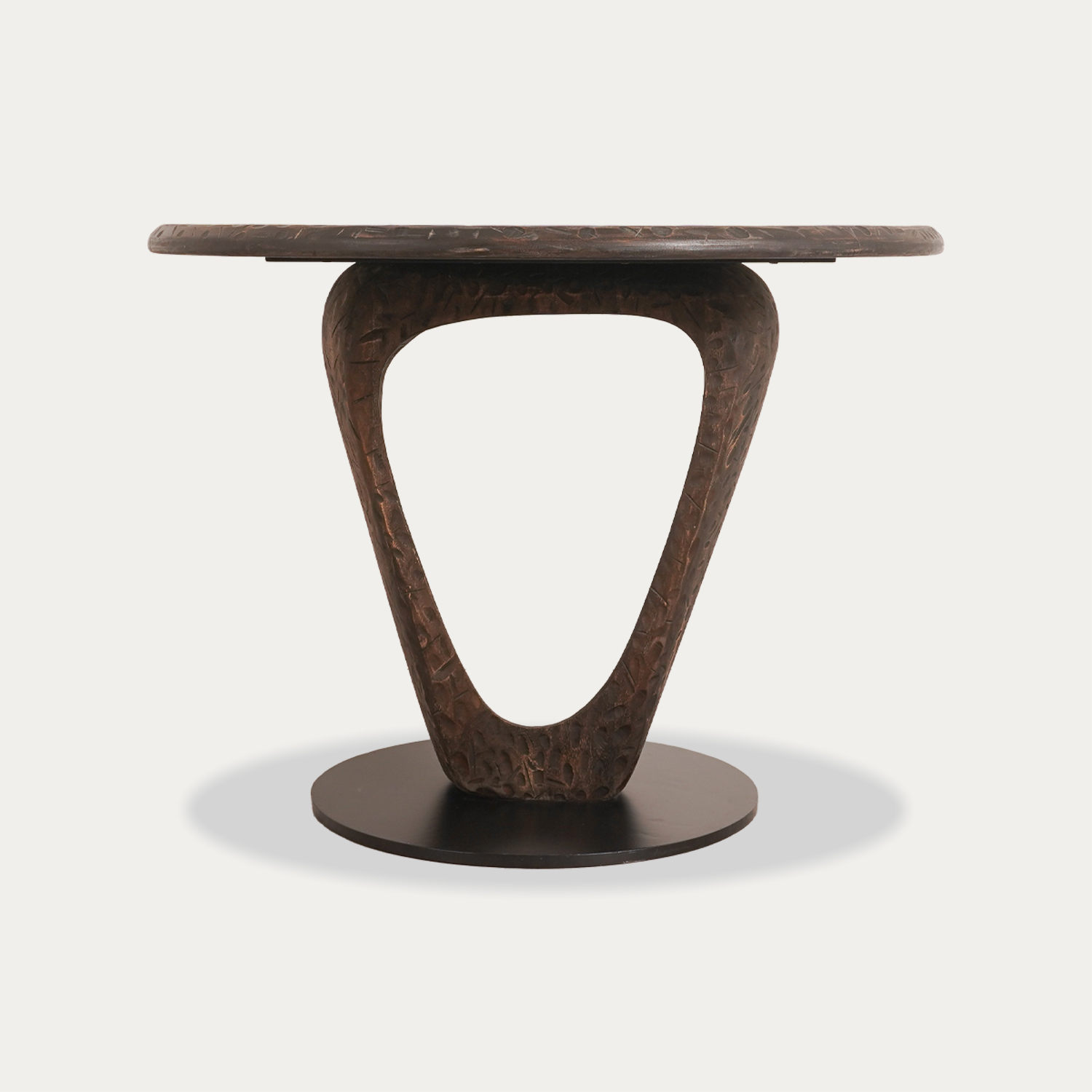 The Zenica Round Dining Table is the perfect centerpiece for any modern home, crafted from durable mango wood for lasting quality. With its African-inspired design, featuring trendy round-shaped legs and a smooth round top, this table brings a touch of elegance and sophistication to any space. The rich, dark walnut color enhances its appeal, while the versatility of the design allows for contrast chairs with textile fabrics and colors to elevate the look. This stunning table is sure to transform your dining room, creating a stylish and inviting atmosphere for all occasions.